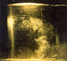 Di conseguenza si ha in continuo la formazione di moltissime bolle di cavitazione, che implodono e quindi sviluppano una pressione che è stata misurata intorno ai 1.000 bar.